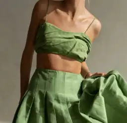 Enhanced through a textural front twist with angled side tucks and a sweetheart neckline, wear this crop top with the Paradiso Cinched Midi Skirt for an effortless matching ensemble.