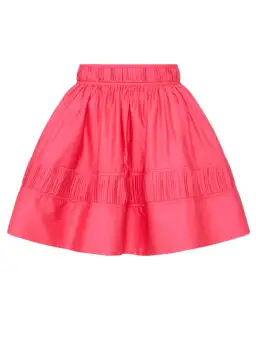 "Cut from 100% cotton sateen, this high waisted mini skirt features ruched panels, side seam pockets and centre back zip closure."