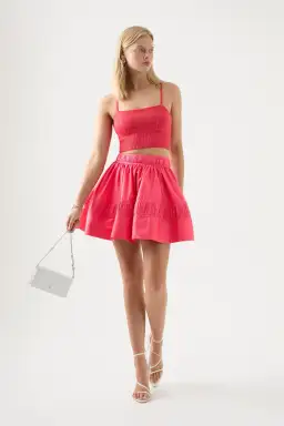 Aje Pepper Ruched Crop Bodice & Calder Mini Skirt Set Rouge Pink