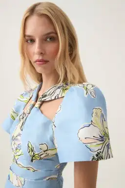 Aje Presence Twisted Mini Dress Blue Hibiscus Size 8