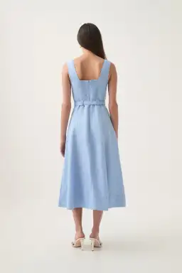 Aje Primary Belted Midi Dress Daydream Blue Size 12