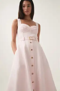 Aje Primary Belted Midi Dress Pastel Pink Size 8