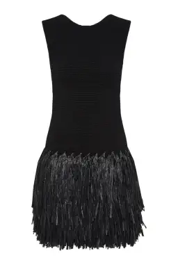 Aje Rushes Raffia Knit Mini Dress Black Size M / AU 10