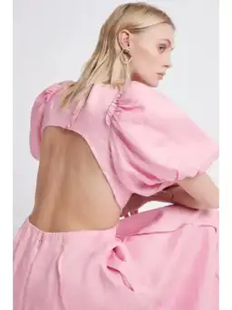 A beautiful mid length dress, with the signature Aje puff sleeve. It has a large cut-out detail at the back, with the top zipper concealed by button detail. Elastic back waist with invisible zipper and side seam pockets!