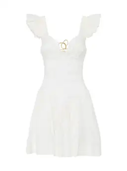 The sweetheart neckline, frilled shoulder straps and fit-and-flare silhouette of this mini dress allow for a uniquely feminine silhouette.