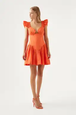 Aje Simone Frill Sleeve Mini Dress in Orange Size 6