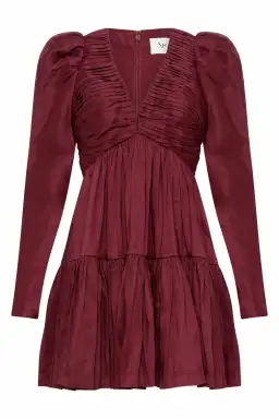 Aje Impasto Ruched Mini Dress Burgundy Size 8