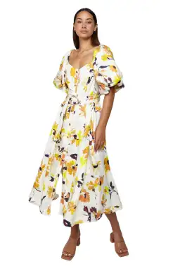 Aje Soleil Belted Midi Dress Pressed Sunflowers Size L / AU 12