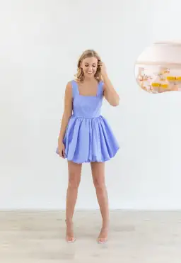 A playful mini dress featuring a fitted corset style bodice with binding and raw cut edging throughout. The style is grounded in a voluminous bubble hem and an exposed zip at centre back, perfect as a show stopping event piece.
