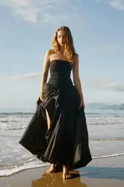 Exude dramatic elegance in the Violette Bubble Hem Maxi Dress. Ruching defines the fitted bodice while an asymmetrical high-low hem balances volume and proportion. Dress up with delicate jewellery and strappy heels, or offset the drama with easy flats.