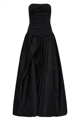 The Aje Violette Bubble Hem Maxi Dress in Black is a dramatic and elegant statement piece. Featuring a fitted bodice and a voluminous bubble hem, it combines structure with fluidity. The classic black hue adds timeless sophistication, making it perfect for evening events or formal occasions.