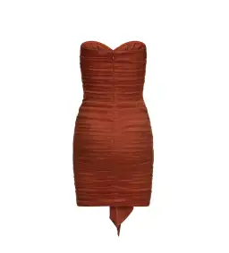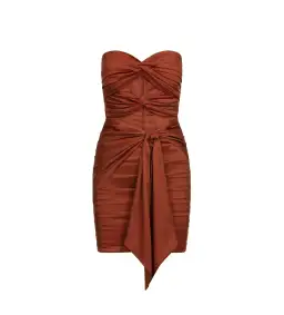 The Lulia Dress will be a fixture for your party outfits. Created in a luxurious golden brown colour and designed with ruching all over for a flattering fit. This mini dress allows all the attention with its unique multiple bust ties and fitted silhouette.