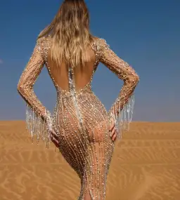 Albina Dyla Deserte Beaded Dress With Tassel Cuffs Size 6