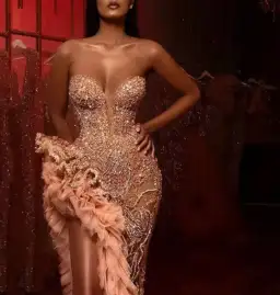 Luxurious Gold Tiered Tulle Evening Dresses Beaded Crystals Sweetheart Prom Dress High Side Split Formal Gowns Vestidos de gala