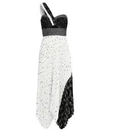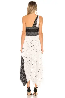 A.L.C. Aurora Pleated One Shoulder Midi Dress White Black Size AU 8