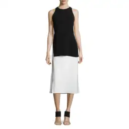 Stunning A.L.C. black and white sleeveless ‘Mer’ midi dress. Black racer style sleeveless top, double-layer white skirt with thigh split. Perfect for Spring Racing Carnival and Derby Day.