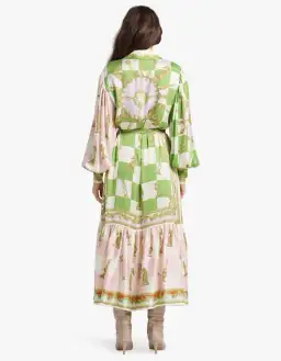 Alemais Checkmate Silk Shirtdress Maxi Dress Multi Print Size 14