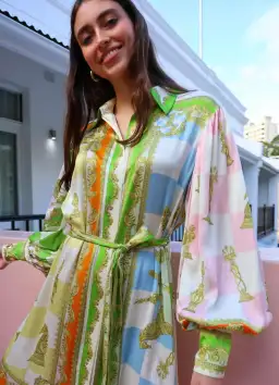 Introducing the effortlessly elegant Checkmate Silk Shirtdress in Multi.