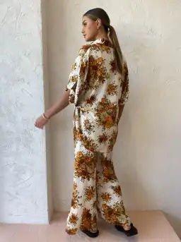 Transition into warmer days with autumnal floral print of Alemais sweet Derby Lounge Pant in Cream/Rust.