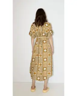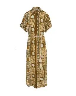Made from 100 percent linen with a bohemian geometric print, this shirtdress is cool in every sense of the word. It has a point collar and a hidden placket with shell buttons, short sleeves with buttons tabs, and a braided cotton belt to cinch the fit, plus everyone’s favorite detail: pockets.