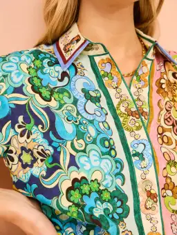 - Concealed placket with shell buttons