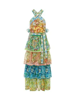 Alemais Dreamer Halter Tier Dress Multi Print Size 8