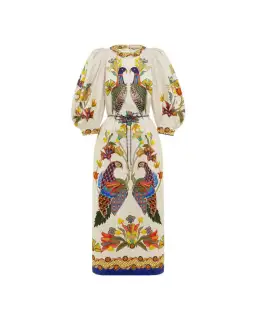 The Effie Puff Sleeve Midi Dress in Pearl is a straight line midi dress designed with balloon sleeve that cuff just after the elbow. Crafted in the brands signature linen fabrication and gorgeous eye catching Alemais print. Style your Effie Puff Sleeve Midi Dress with white boots and lots of gold jewellery.