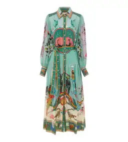 Alemais Evergreen Midi Shirtdress Green/Print Size 14