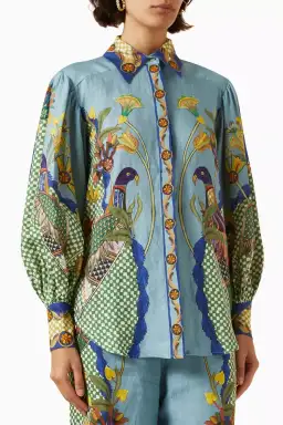 Introducing the Alèmais Gilly Shirt & Pant Set in Misty Blue, the ideal garment for your elevated summer wardrobe.