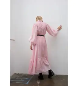 The Halcyon story is defined by poetic silhouettes that are feminine and romantic. Airy billowy sleeves, expertly crafted pin tucks, and lustrous shell buttons set the heart a flutter. Crafted from sustainable ramie, this poetic dress evokes playful sense to twirl and admire the details of its conscious design.