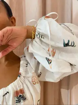 Hera Drawstring Set in Ivory has us falling for billowing silhouettes with delicate detailing.
