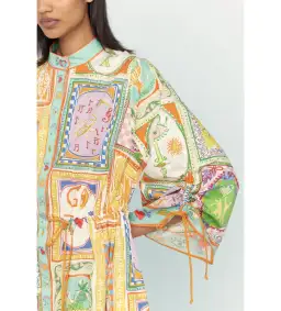 - Slightly flared sleeve with adjustable drawstring gathering and ties