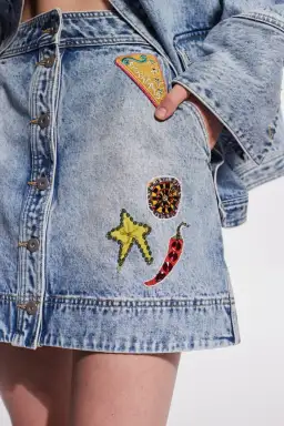 The ultimate cool-girl aesthetic by Alemais. The Jackpot Denim Jacket & Denim Skirt Set.