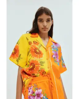 Alemais Jude Oversized Linen Shirt and Short Set Orange Floral Size AU 14