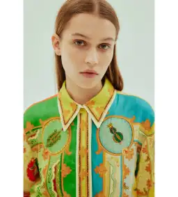 - Concealed placket with self-covered buttons