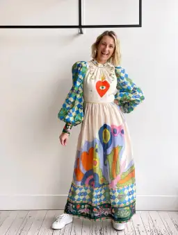 Alemais Lou Balloon Sleeve Midi Dress in cream Size AU 12