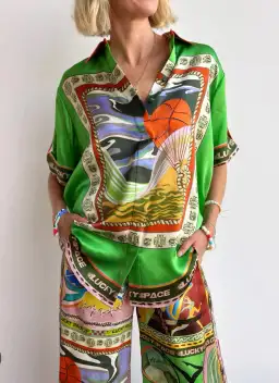 Alemais Lucky Pace Silk Shirt & Pant set size 12