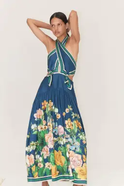 Alemais Lyla Halter Midi Dress Blue