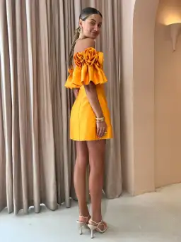 With the bold head-turning orange hue and flattering mini silhouette, this mini dress will get the party started for any occasion in your calendar.