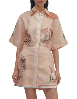 Alemais Marina Mini Shirt Dress Peach Size AU 6