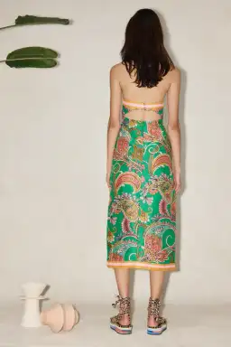 Make maximum impact at your next event with the Marion Bodice Dress in Emerald from Alemais. Crafted from a Silk Linen blend fabrication, this flattering strapless midi dress features a curved neckline, fitted bodice with structured boning and an elasticated back.