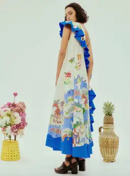 Alemais Nadia One Shoulder Ruffle Midi Dress Multi Size AU 16