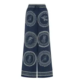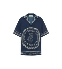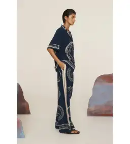 Alemais Oceane Silk Shirt and Pant Set Navy Print Size AU 8