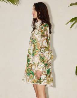 Alemais Octavia Mini Ruffle Dress Linen Long Sleeve Multi Size AU 8