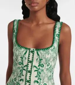 A contemporary brand with an artisanal focus, Alémais celebrates the art of fashion through an eclectic mix of patterns and prints. Made from a breathable linen and cotton blend, the Olive minidress, a Mytheresa Exclusive, is completed with an intricate floral motif, a fitted bodice, and a flared skirt for added volume.