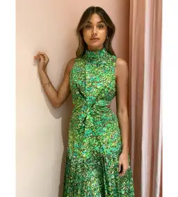 Alemais is adding a twist to coveted silhouettes with the Phyllis Twist Front Pleat Dress in Acid Green. Crafted from a Cotton Poplin fabrication, this midi dress features a high neck, twist front detail and waist cut outs which falls elegantly into a handkerchief hem pleated skirt. Turning heads with its abstract ditsy print and unexpected back cut out, the Phyllis will brighten up those birthday celebrations and twilight cocktail.