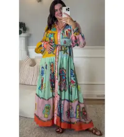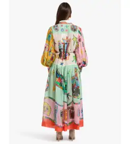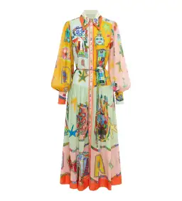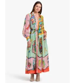 The dress in the image is the Alémais Players Shirtdress, featuring exclusive artwork by Michael Swaney.Description of the Alémais Players Shirtdress: