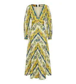 Alemais Quinn Linen Long Sleeve Midi Dress in Print Size AU 12