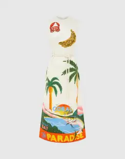 Never been worn, tags still attached, size 10. Make a statement with the Samaki Midi Dress from Alemais, showcasing a bold print and a flattering midi length. Dress up your summer occasions by pairing this midi dress with heeled sandals and statement jewellery. Crafted from a silk satin sand-wash fabrication, this midi dress features a sleeveless straight silhouette, high neckline and button loop centre back closure. Complete with a playful side split hem, this elegant dress is perfect for a long lunch or a summer getaway.