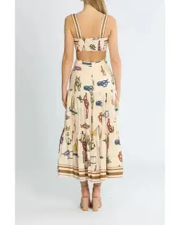Alemais makes choosing a summer outfit easy with the Ships Ahoy Sundress. Featuring a nautical print, and waist cut-out detailing, perfect to rent for daytime events!